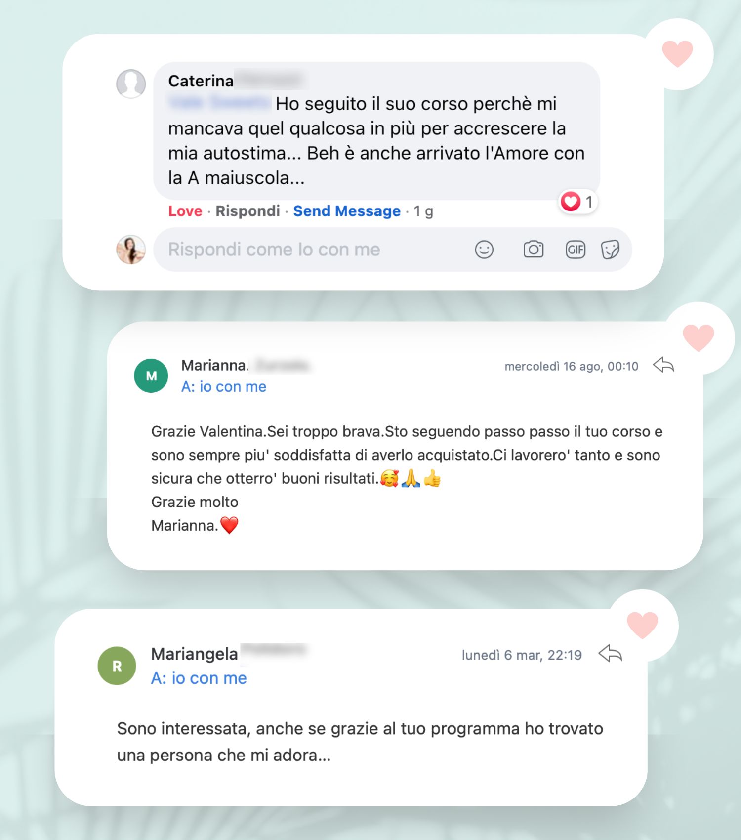 Questo per iniziare a lavorare nella tua realtà interna riscoprendo e alimentando il tuo amor proprio (cosa necessaria se vuoi essere amata).