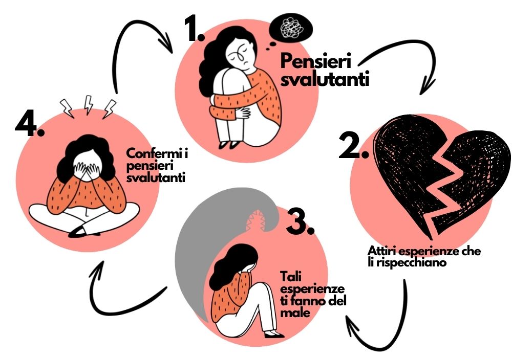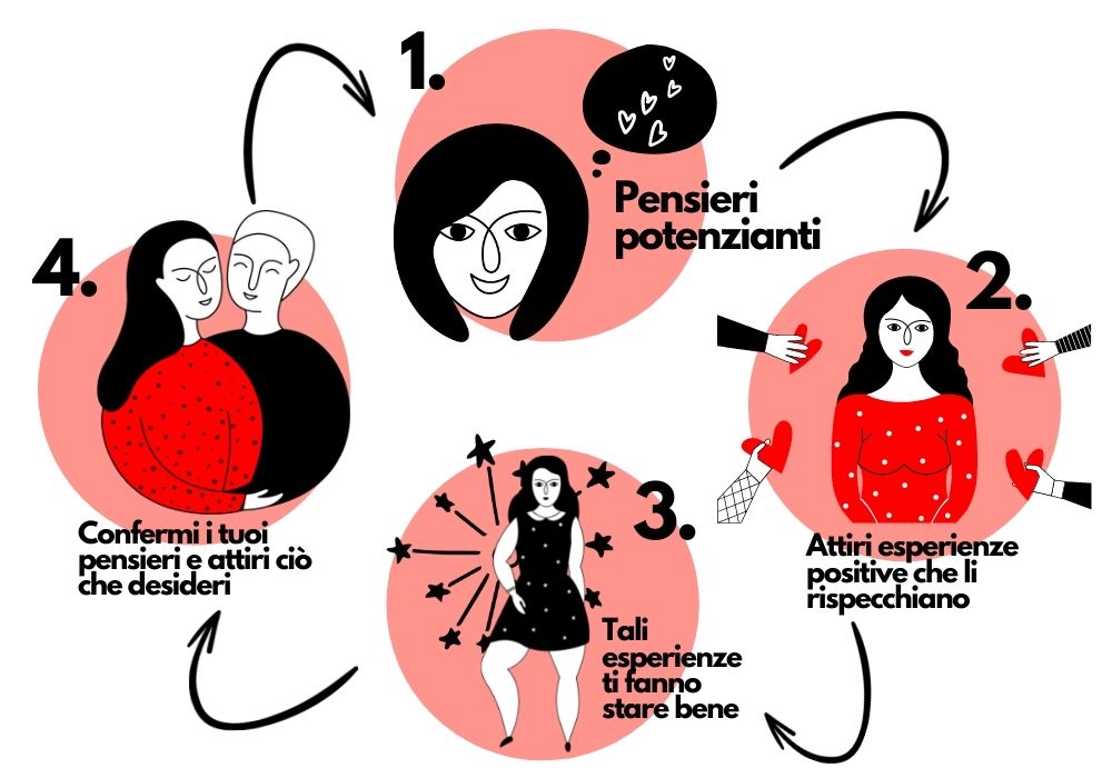 ... attraverso un approccio che si focalizza e lavora sui pensieri che produciamo anziché sulla credenza che si debba cambiare se stessi e il proprio comportamento per sentirsi realizzate sentimentalmente.